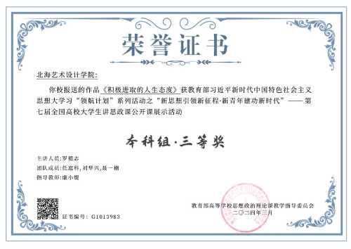 大学生讲思政课获奖证书