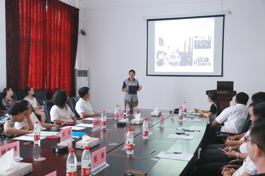 会议开始由云曼老师对这次培训工作做详细介绍。接着由拉萨二职的培训团组长赵纯金老师做总结汇报,他以PPT的形式向大家详细介绍了这三个月的培训情况,展示了他们学习的成果,和大家分享了自行制作的一段视频,生动的展示了八位老师在北艺学习和生活的片段。随后赵老师谈及此次培训的体会和感悟,回顾了每一次专家座谈会带给他们的思考,对学院及帮助过他们的老师表达了感谢。赵老师的汇报感动了在场的领导和老师,更让大家看到了与拉萨二职合作关系的美好未来。