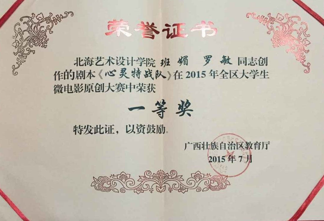 7月10日,为促进我院学生思想道德教育的发展,动画学院积极参加了2015年全区大学生微电影原创大赛,参赛微电影作品《心灵特战队》在比赛中荣获优秀奖,电影剧本喜获一等奖。