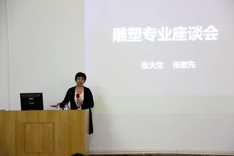 首先,张大生教授为我们讲述了他最近完成的雕塑工作——为“珠城勇士”骆春伟烈士塑像。张教授抱着对工作的热情和对英雄的敬仰,在一星期的时间内做出了三个设计稿,经过多次商讨定稿后带回北京进行放大设计,并铸铜制作。张大生教授告诉同学们,除了课堂学习,同学们还应该在课外积累,留心身边的雕塑作品,学习前辈经验。