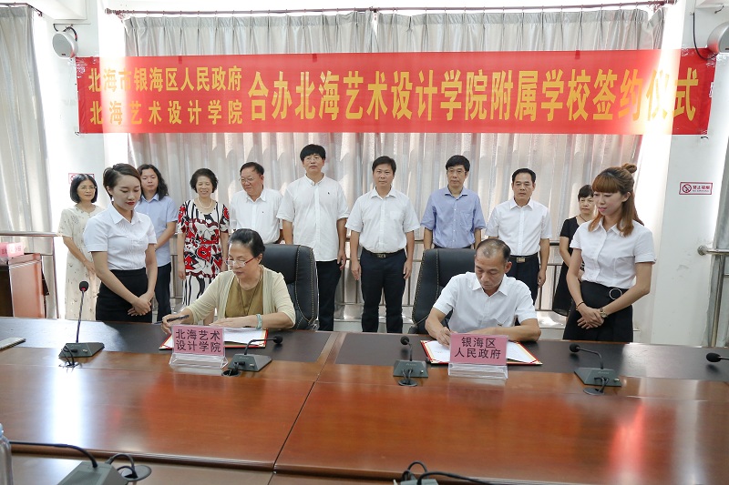 2017年9月2日上午9:30,在北海市银海区人民政府四楼会议室,举行银海区人民政府与我院合办北海艺术设计学院附属学校签约仪式。北海市教育局局长叶宗沛,银海区区长梁田等四家班子领导,我院执行董事郑超、党委书记贺争平、常务副院长张建虹等学院主要领导出席了签约仪式。