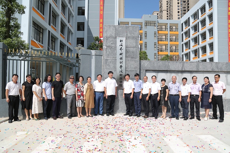 签约仪式结束,全体与会人员共同见证了北海艺术设计学院附属学校揭牌仪式。随后我院领导与北海市教育局、银海区人民政府相关领导一同走访考察校园情况。