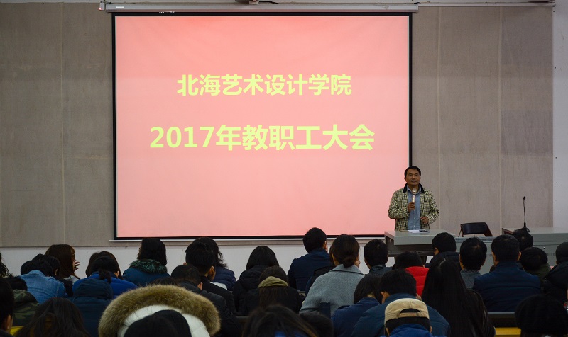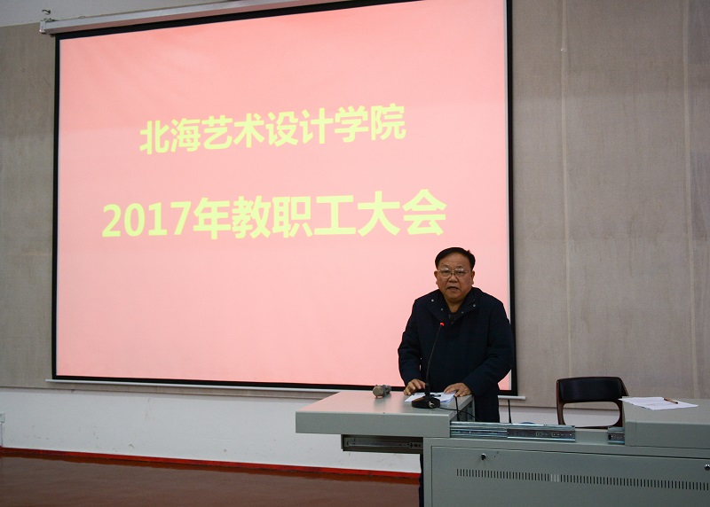 我校党委书记贺争平在教职工大会上发表讲话。他首先对我校2017年在人才培养、招生就业、社会服务、党建工作等方面取得的成就与进步表示高度的认可,对学校教职工的努力付出表示感谢。贺争平书记指出,在十九大会议召开的背景下,我校多次组织了学校师生学习党的十九大会议重要精神,并开展了一系列党支部风采实践活动,我校在2017年取得了一些成就:西校区新宿舍大楼在建,对学校规模发展再上一层楼;新图书馆落成已对师生开放;完成了学士学位评估自评与专家预评工作;完善了党组织部建设;名师大讲堂已形成特色教学品牌;在校企合作方面,我校在众多社会实践项目中取得良好成绩;完善了我校“大政治”思政改革工作,提高思政课的教学质量;落实了我校意识形态宣传工作;加强了我校校园文化宣传工作等。贺争平书记还对工作中与学校发展中出现的不足提出了整改建议,并对2018年工作提出了要求。