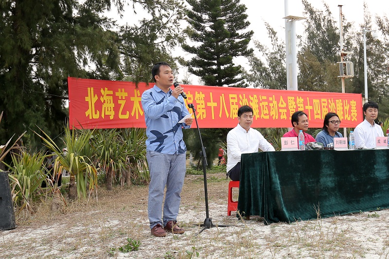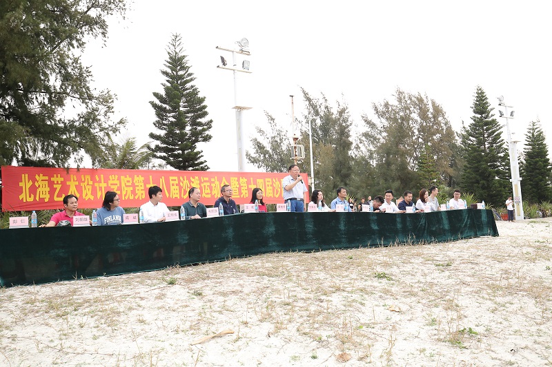 2018年4月13号上午,全校师生齐聚在北海市银滩公园,拉开了我校第十八届沙滩运动会暨第十四届沙雕大赛的帷幕。开幕式由我校党委副书记、副校长彭仁主持,党委副书记、副校长林秀琪致辞,党委书记贺争平宣布运动会正式开幕。我校副校长胡胜、副校长黄艳芳、副校长王斌及二级学院领导等出席了开幕式。