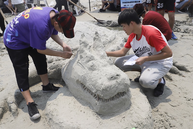 各项比赛在激烈的角逐,第十四届沙雕比赛与此同时也在进行中。在炎炎烈日下,参赛师生们展开丰富的想象,将精湛的沙雕艺术与大家喜闻乐见的卡通形象相结合,增添学院文化风采。沙雕大赛不仅成为我校的传统活动之一,还是北海银滩景区一张靓丽的名片,吸引许多游客驻足观看。