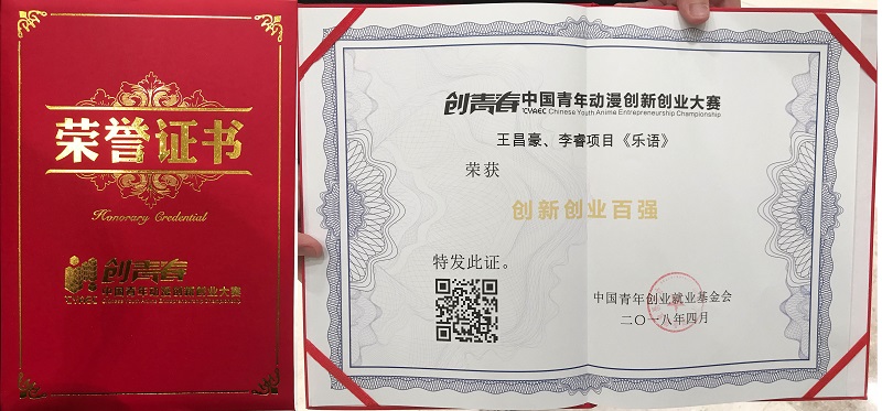2018年4月14日,我校动画学院孙永辉老师带领动画作品《乐语》创作小组学生前往杭州,参加为期两天的首届“创青春”中国青年动漫创新创业大赛决赛,最终获得了“创新创业百强”。