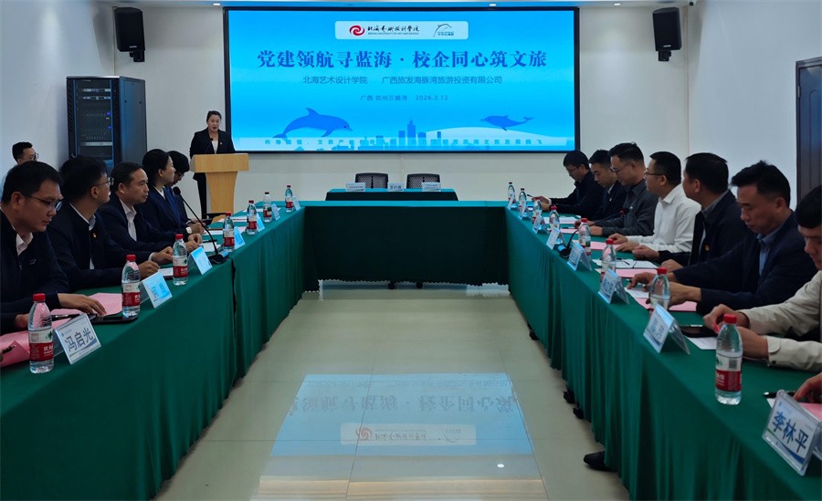 为深入贯彻新时代党的建设总要求,全面深化校企党建共建与产教深度融合,充分发挥高校专业优势与企业产业优势,搭建资源共享、优势互补、协同育人的交流平台,精准拓展毕业生就业岗位,助力文旅产业高质量发展,3月12日上午,我校党委书记覃宪儒率队赴广西旅发海豚湾旅游投资有限公司开展访企拓岗暨校企合作交流活动。副校长陶立阳,校长助理、影视动画学院党总支书记张帆,校长助理、设计艺术学院院长李林平,校长助理、美术学院执行院长龚为,美术学院党总支书记韩玮,设计艺术学院党总支书记黄锦等相关负责人参加活动。此次活动聚焦强化校企、凝聚党建合力,推动专业教学与文旅实景实践深度衔接,助力学生专业技能落地提升,深挖文创开发、宣传推广、研学实训价值,实现党建工作、文旅产业、专业育人同频共振,打造“党建+文旅+专业”校企共建特色品牌,构建长效合作、互利共赢的发展机制。
