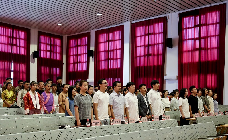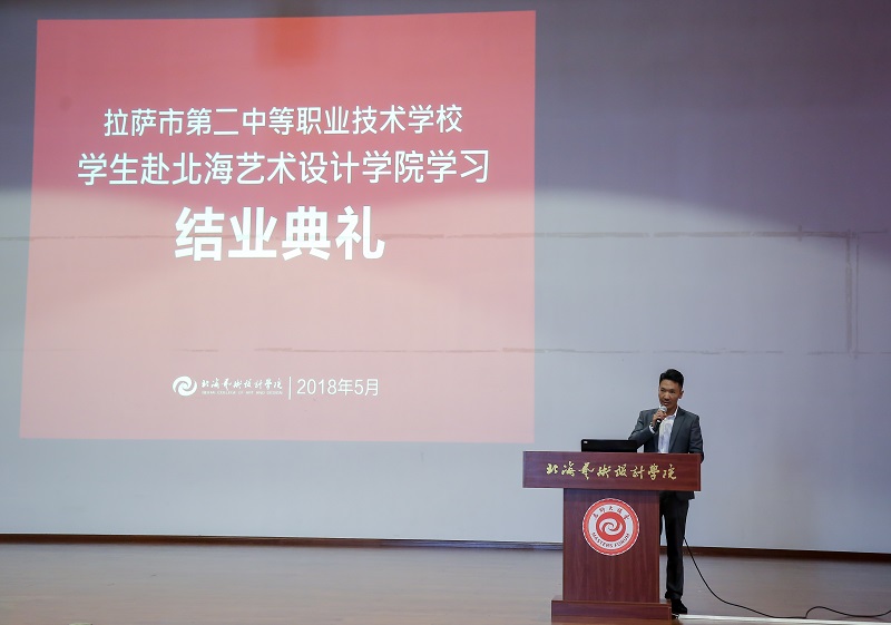 典礼在庄严的国歌中正式开始。设计学院李林平常务副院长首先和在场师生一起回顾了拉萨二职的同学们在北艺的学习生活,对即将返回西藏同学们表示衷心的祝贺,希望他们能够不断提炼与升华,以开阔的眼界、宽广的胸怀,迈向新的天地。