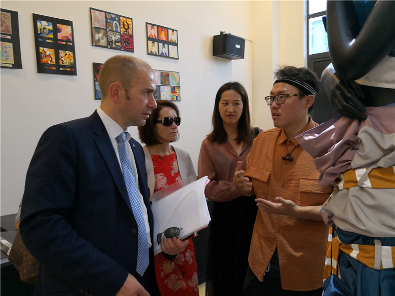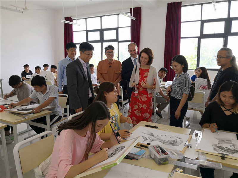 (德比大学校领导走进环艺学院基础课堂,对《异性偶像》课程教学表示赞赏)