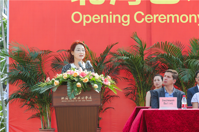 北海市委常委、宣传部部长、副市长黄江在典礼上致辞说,北海中国最美的海滨城市之一,是中国西南地区同时拥有深水海港、全天候机场、高铁、高速公路的城市,北海是古代“海上丝绸之路”的重要始发港,国家历史文化名城。北海市面临的北部湾有丰富的海洋资源,海洋生态环境良好,这里有热情好客的北海人民、有回味无穷的海鲜特产、有独具特色的地方文化。她指出,北海艺术设计学院是一个容纳上万人的校园,到处洋溢着朝气蓬勃,青春活力,希望同学们在新的学习环境中,要时刻牢记时代赋予大家的崇高使命,不断提升自身能力,努力练就扎实本领,脚踏实地、勤奋拼搏,走好大学之路,人生之路,将来成为对国家、社会有贡献的人才。