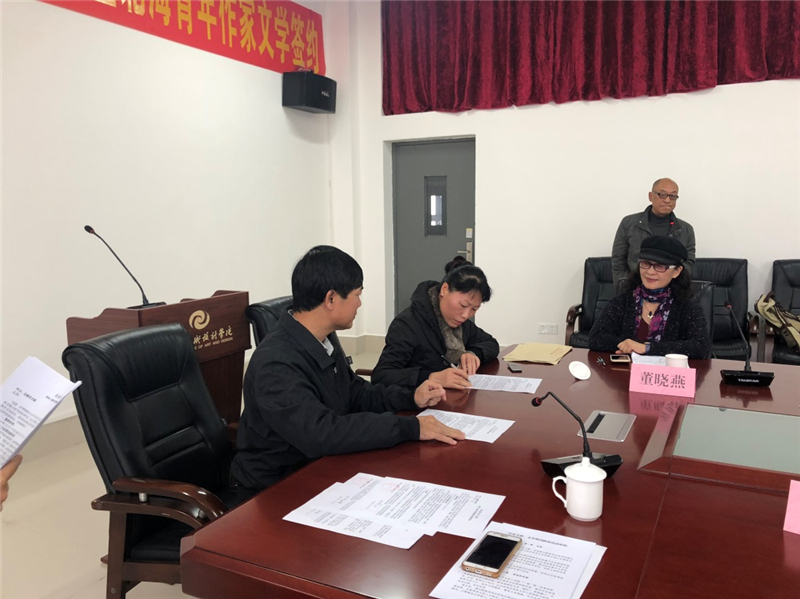 (北海市文联党组副主席邓超斌代表与北海青年作家签约)