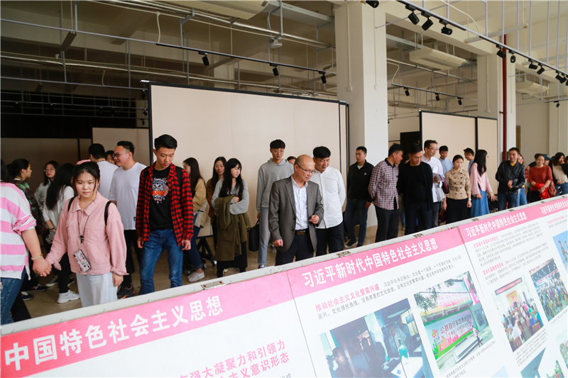 揭牌仪式结束后,我校开展了首场活动——《画说习近平新时代中国特色社会主义思想》展览。广大师生纷纷表示要加强学习,提高自己的素质和能力,通过自身努力,为国家建设多作贡献。