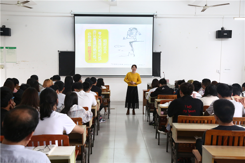 在座谈会之前,双方首先进行了示范课观摩交流活动,分别由我校班媚老师与广西大学行健学院李丹老师各讲授一节《马克思主义基本原理概论》课程,两校老师的授课过程中切磋了教学技艺。