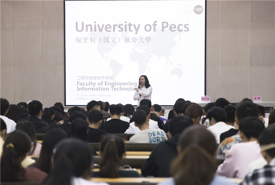 讲座上,András Grer教授通过视频展示了匈牙利以及佩奇大学的基本情况。匈牙利隶属于欧盟,与多国接壤,拥有悠久的历史与辉煌的文化艺术。佩奇大学是匈牙利第一所国立大学,在匈牙利高等教育中占有重要地位。佩奇大学学校境优美,建筑风格独特,设施设备完善,专门扩建了international studio 为国际生提供更好的学习环境,具有丰富的历史文化底蕴。