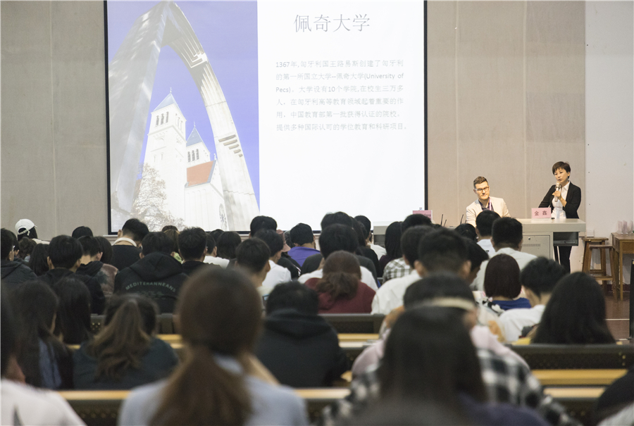 2019年12月17日晚7:30于我校西校区伦理楼107,匈牙利佩奇大学András Grer教授、金鑫博士莅临我校开展“2+4”本硕连读国际班宣讲。本次讲座由我校副校长胡胜主持。