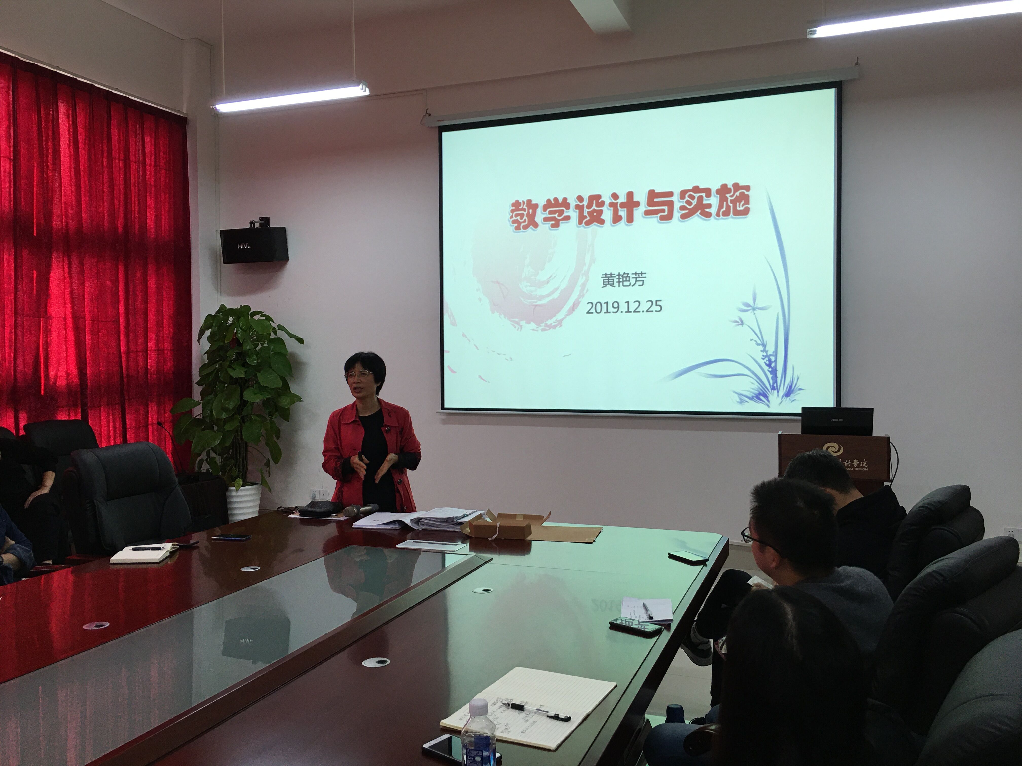紧接着黄艳芳副校长就如何进行教学设计与实施进行了培训。黄副校长提到教学设计的关键是解决教学问题,以教学效果为导向,以学情分析为基础,进行有效果、有效益、有效率的有效教学。
