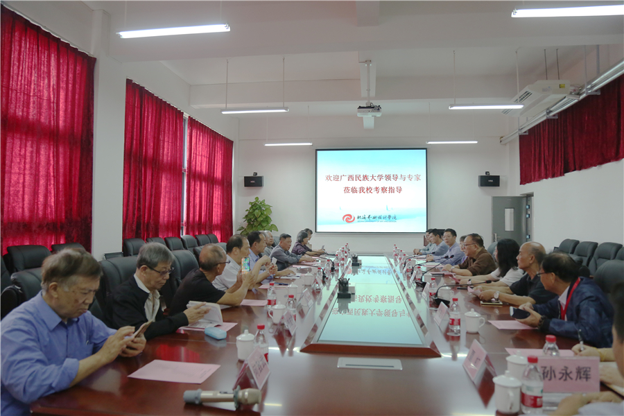 会上,我校常务副校长贺争平对李尚平主任一行的到来表示热烈欢迎,并从学校概况、办学定位及成效、管理体制、校园文化建设等方面介绍了学校的基本概况。副校长胡胜分别就我校特色实训项目、信息化建设和校企合作方面谈了具体经验。李尚平主任对我校的热情接待表示感谢,对广西民族大学的基本概况及此次来访的主要目的进行了介绍。