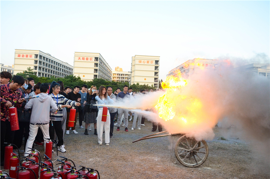我校保卫处副处长王瑞轩为大家介绍了不同种类的灭火器及其使用方法,并进行了现场的示范。随后,在工作人员指导下,在场师生都科学、规范使用灭火器,对消防安全的重要性有了更为深刻的理解。