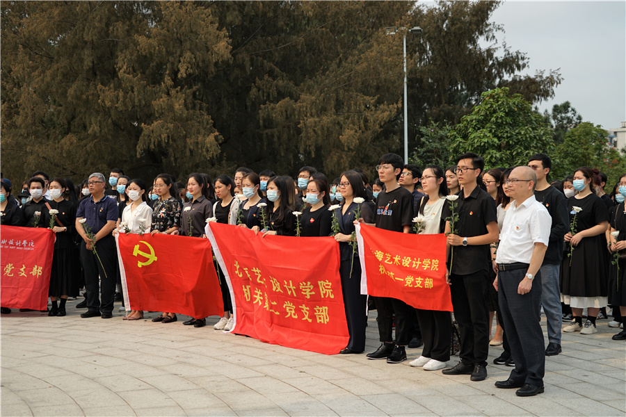 随后全体师生代表默哀一分钟,团员代表向烈士敬献花篮、师生代表向烈士敬献鲜花,表达了对烈士的缅怀和敬意。