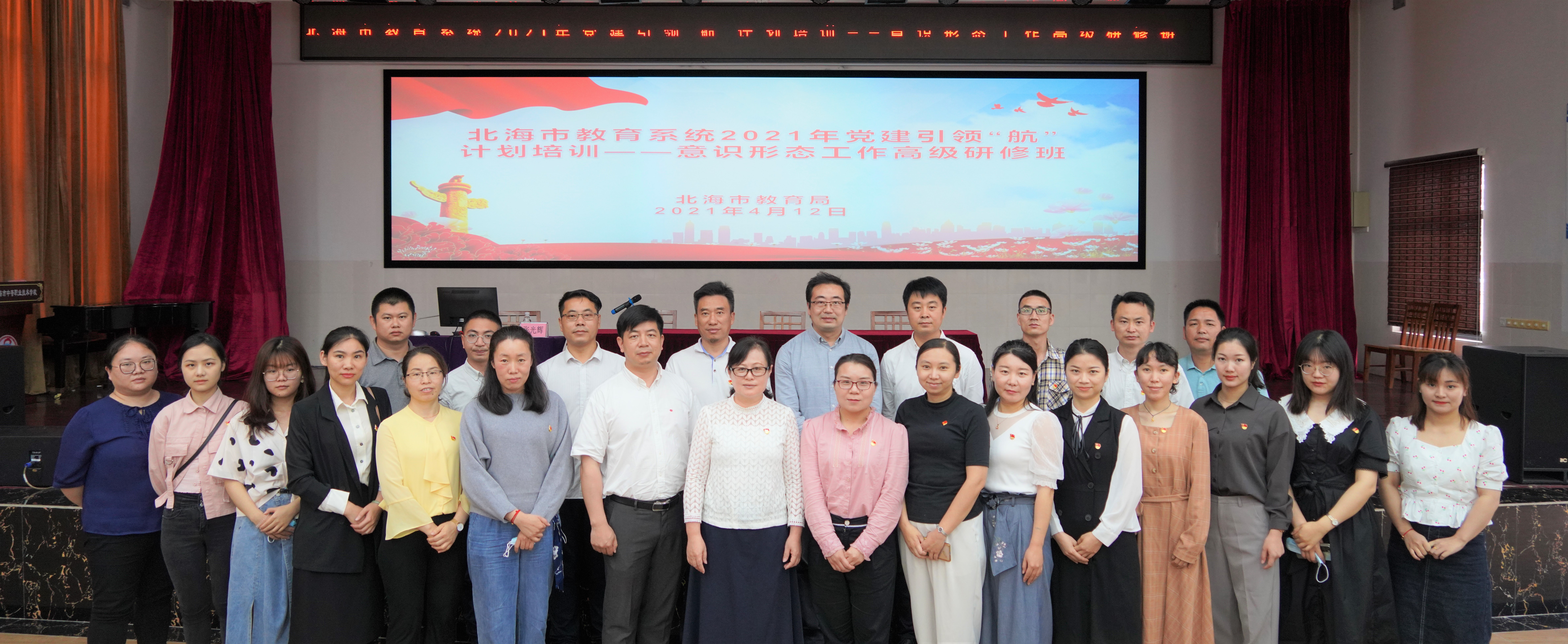 为深入学习贯彻习近平新时代中国特色社会主义思想,提高我校基层党组织负责人落实意识形态责任的意识和能力,进一步提升我校意识形态工作水平,推动我校意识形态工作高质量发展,4月12日至13日,我校全体党委班子、各级党支部书记参加了北海市教育系统党建引领“航”计划培训——意识形态工作高级研修班。