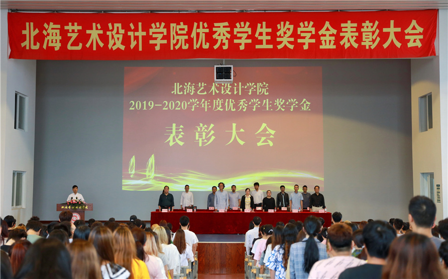 大会在雄壮的国歌声中拉开序幕,党委书记张阳宣读了表彰决定。与会领导依次为获得国家奖学金、国家励志奖学金、自治区人民政府奖学金、北海艺术设计学院优秀学生奖学金获得者颁奖。