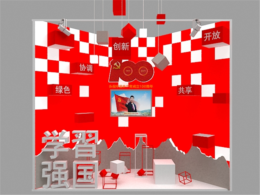 注重教与学相结合。发挥学科资源优势,将“党史”教育与学科特色融合,在专业课程授课过程中,将课程思政与专业课相结合,用设计说党史,学生收集党史故事和红色素材,把党史素材融入日常设计创作中,制作的“光辉历程--建党百年”主题、“抗美援朝”主题、“抗疫展厅”等惟妙惟肖,教育激励广大青年学子坚定理想信念,牢记初心使命,厚植家国情怀。