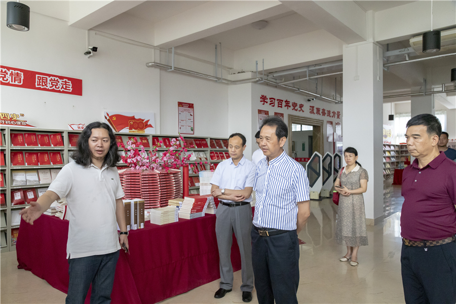 考察组首先参观了我校在图书馆一楼展厅举办的环艺学院2017级学生毕业作品展、设计学院视觉传达和产品设计学生工作室和图书馆三楼的党史学习教育学习角,表示充分肯定,考察组成员永福县政协党组副书记、副主席黄泽治对我校学生作品能够与时代主体接轨提出高度评价。