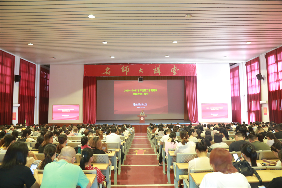 7月18日上午,我校在西校区大礼堂隆重召开2020-2021学年第二学期期末全校教职工大会。全体教职工800余人参加会议,常务副校长贺争平主持大会。