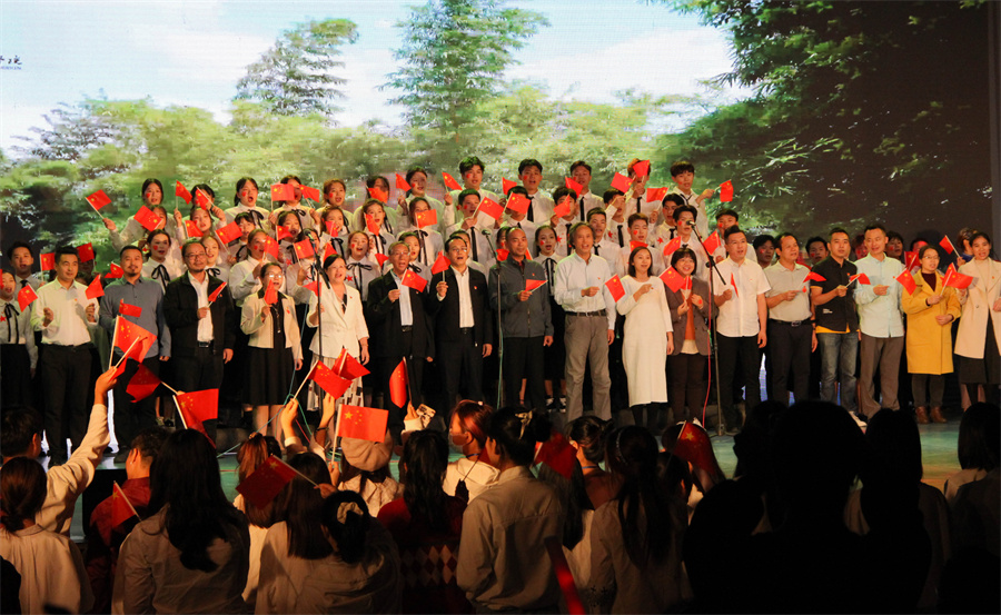分享会在《唱支山歌给党听》的全场大合唱中落下帷幕,与会嘉宾和领导一同上台参与合唱。
