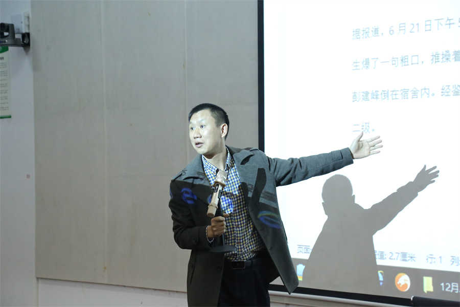 12月3日晚,北海市人民政府经济研究中心党组书记、主任、法学会副会长陈雄根以《依法治校,建设和谐校园》为题开展专题讲座。