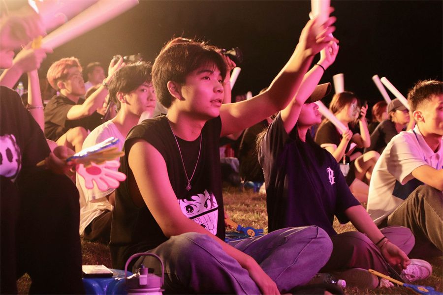 我们青春无畏,乘风破浪,踩着音乐的节拍,带动现场的观众激情呐喊,欢乐四溢。