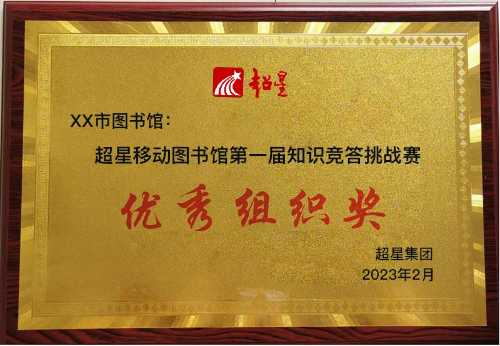单位组织奖(50名)(根据单位参与人数进行评选,仅限移动图书馆正式合作用户):奖牌大概效果如下