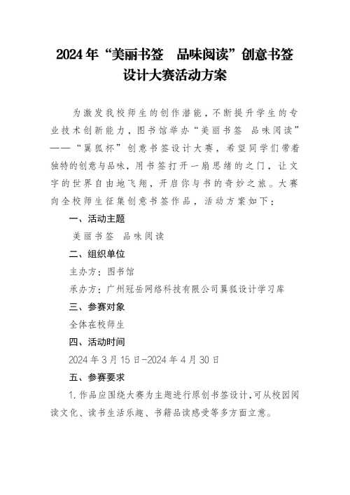 2024年“美丽书签 品味阅读”创意书签设计大赛活动方案
