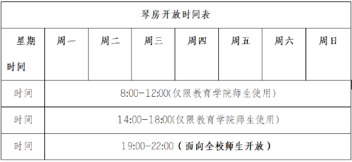 琴房采用 “定时开放 + 预约开放” 相结合的模式,具体时段及开放范围如下: