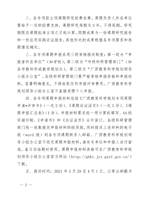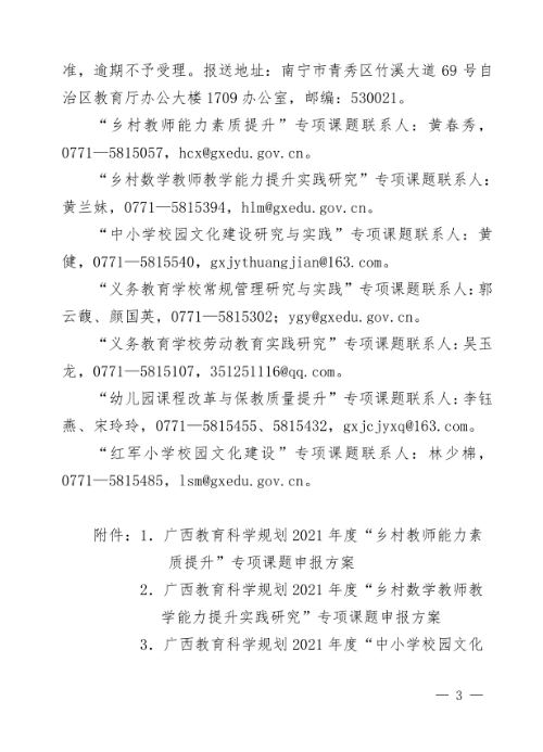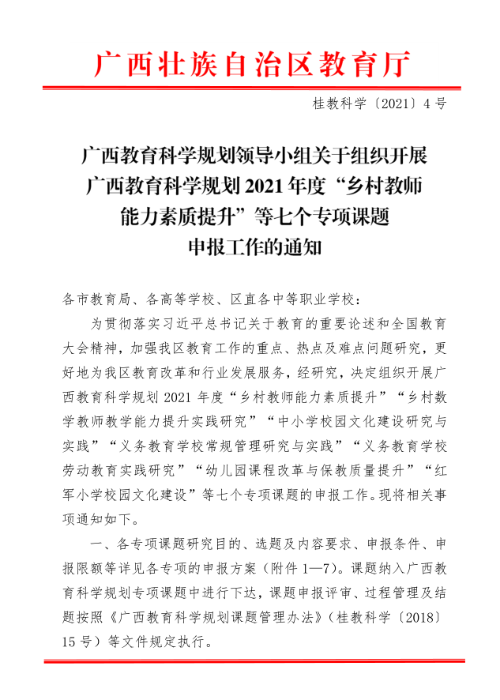 广西教育科学规划领导小组关于组织开展广西教育科学规划2021年度“乡村教师能力素质提升“等七个专项课题申报工作的通知