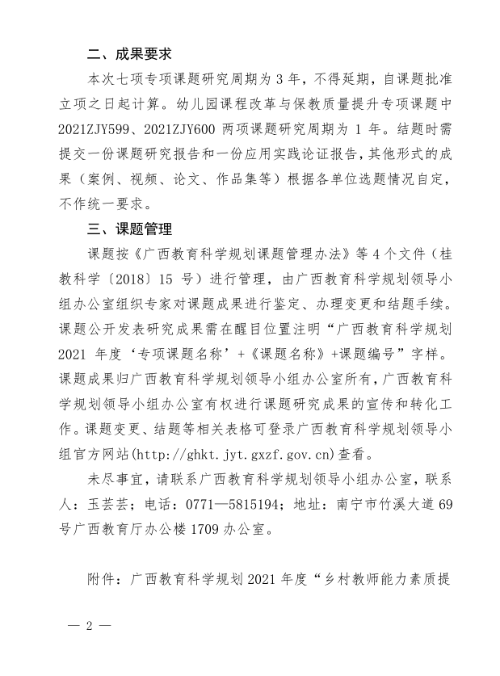 广西教育科学规划领导小组关于组织开展广西教育科学规划2021年度“乡村教师能力素质提升“等七个专项课题申报工作的通知
