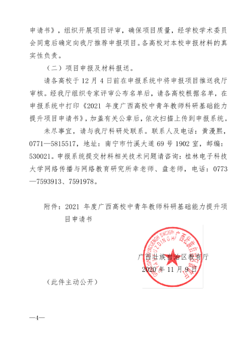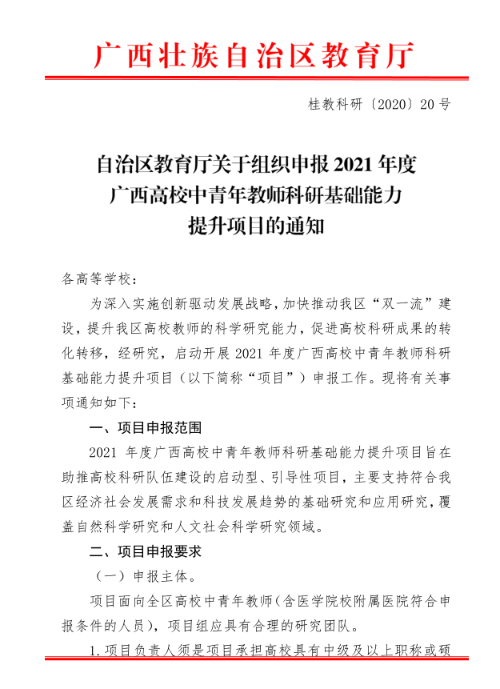 自治区教育厅关于组织申报2021年度广西高校中青年教师科研基础能力提升项目的通知