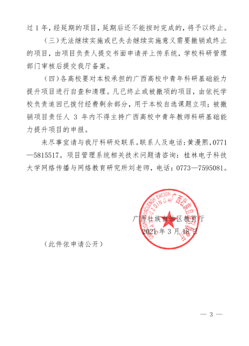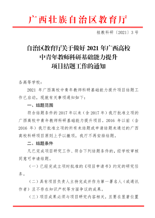 自治区教育厅关于做好2021年广西高校中青年教师科研基础能力提升项目结题工作的通知