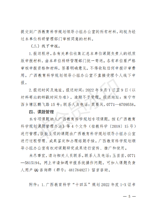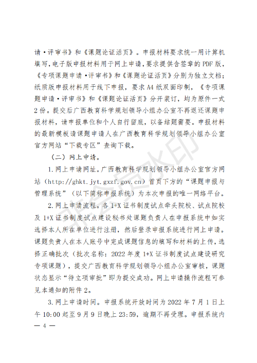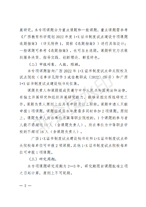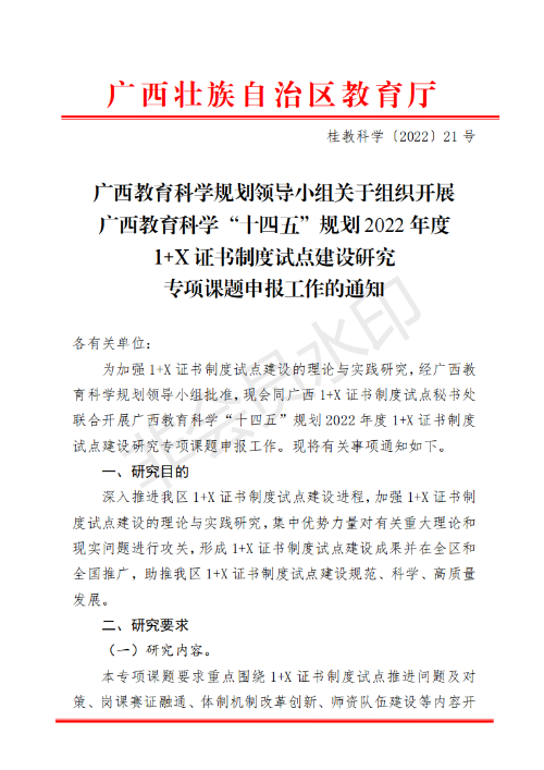 广西教育科学规划领导小组关于组织开展广西教育科学“十四五”规划2022年度1 X证书制度试点建设研究专项课题申报工作的通知_