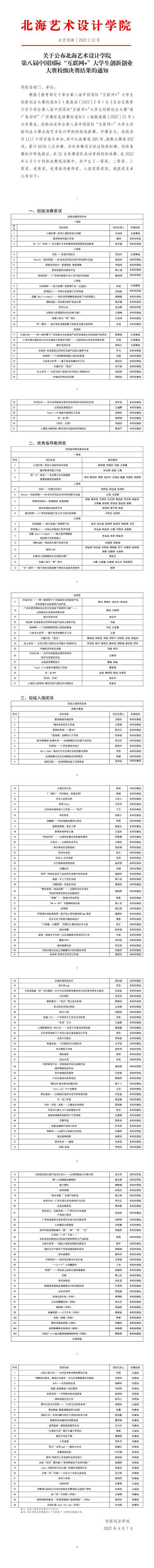 北艺创新〔2022〕12号关于公布北海艺术设计学院第八届中国国际“互联网+”大学生创新创业大赛校级决赛结果的通知