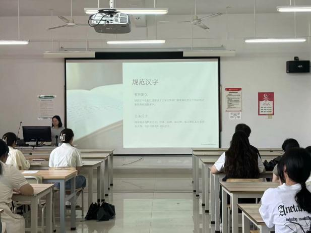 为了加大推广普通话的宣传力度,筑牢强国语言基石,9月26日晚,广西语言学会理事、国家级普通话水平测试员、国家文化部朗诵考级高级教师黄昭艳在西校区公德楼107为我校师生带来了一场题为《提升汉语言规范素养 做优秀文化传承人》的精彩讲座
