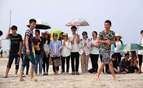 与此同时,沙雕比赛也在紧张进行当中。各班参加沙雕制作的同学,在海边规定的区域内进行各自的沙雕创作。放眼望去,海滩上高手云集,挖沙、铲沙,堆沙,筑造,各班参赛队伍忙碌起来有条不紊、井然有序。中午1:00,各班参赛作品基本完成。一件件精美的沙雕艺术作品展现在全体师生和广大游客面前,赢得了大家的争相拍照和啧啧称赞。