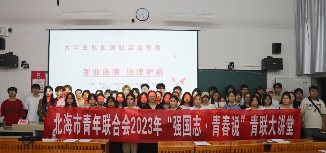 10月26日19:30,由团市委、银海区团委、青春社区、广西华志翔(北海)律师事务所、长青社区、北海艺术设计学院承办的2023年北海市“就业扬航,政策护航”青年就业创业政策宣讲活动在我校功德楼111开展。