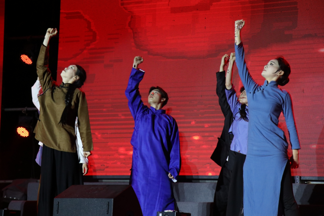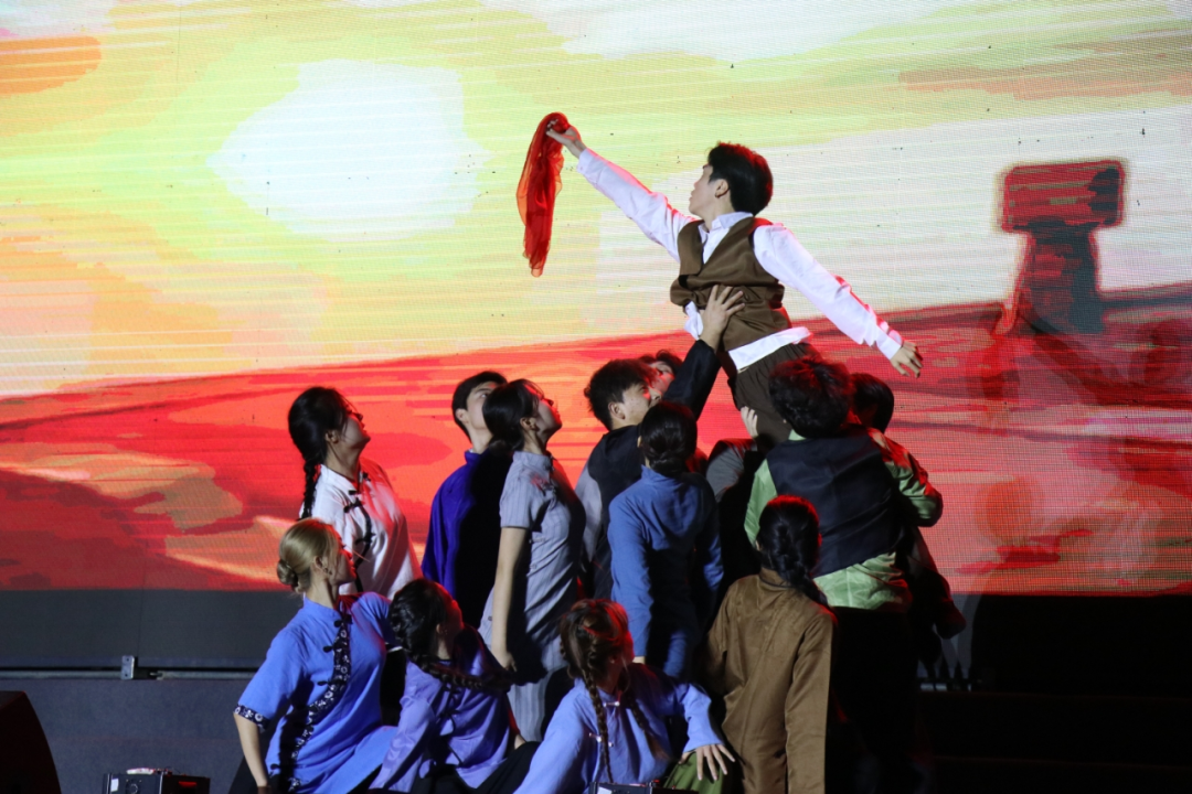 舞蹈节目《红船》中,舞者们以震撼人心的表演,重现了那段波澜壮阔的历史。红色灯光映照下,表演者们以精湛的舞技,生动展现出在党的危难时刻,有志青年们的坚定信念与爱国情怀。