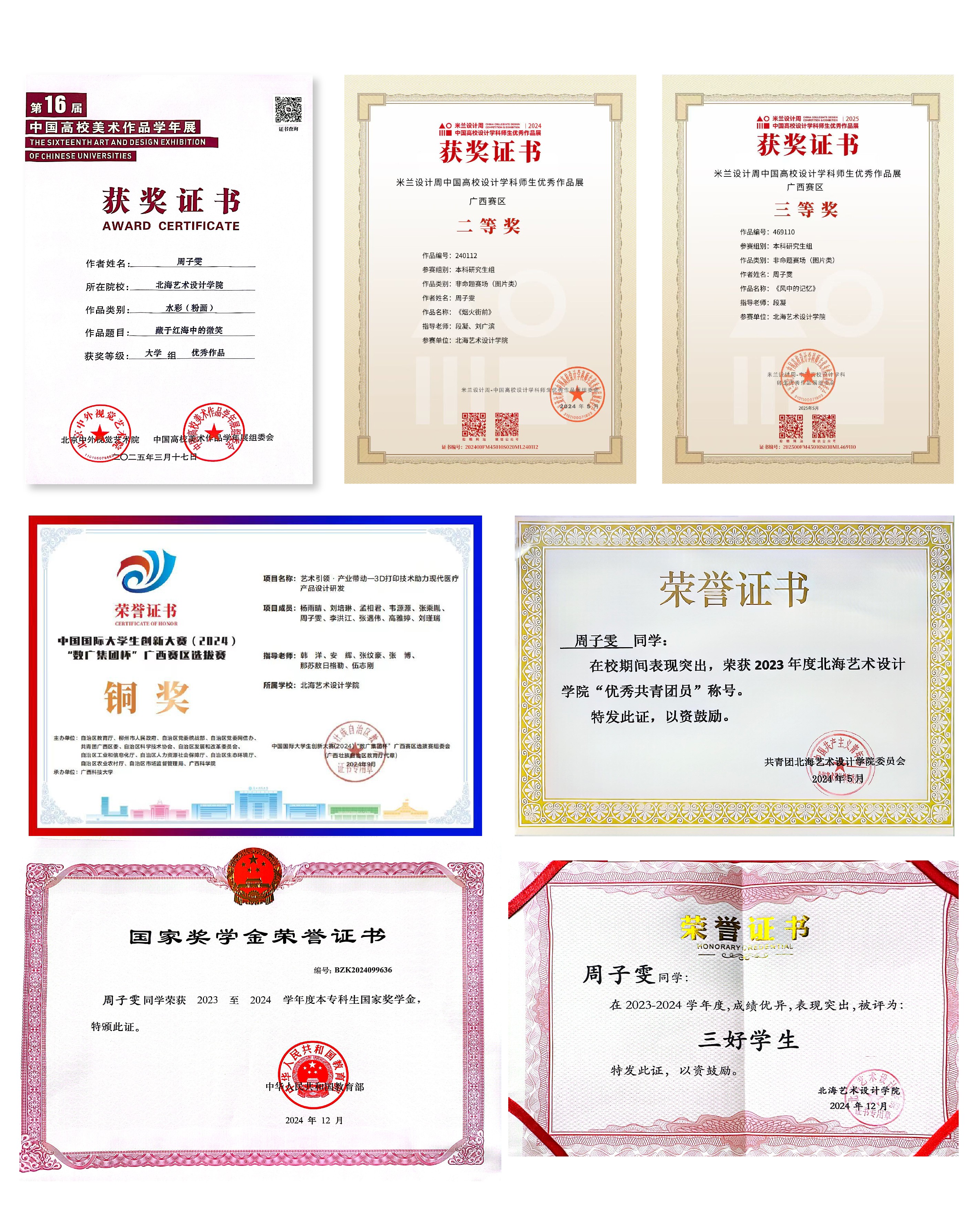 2025年 获 “米兰设计周中国高校设计学科师生优秀作品展广西赛区三等奖;