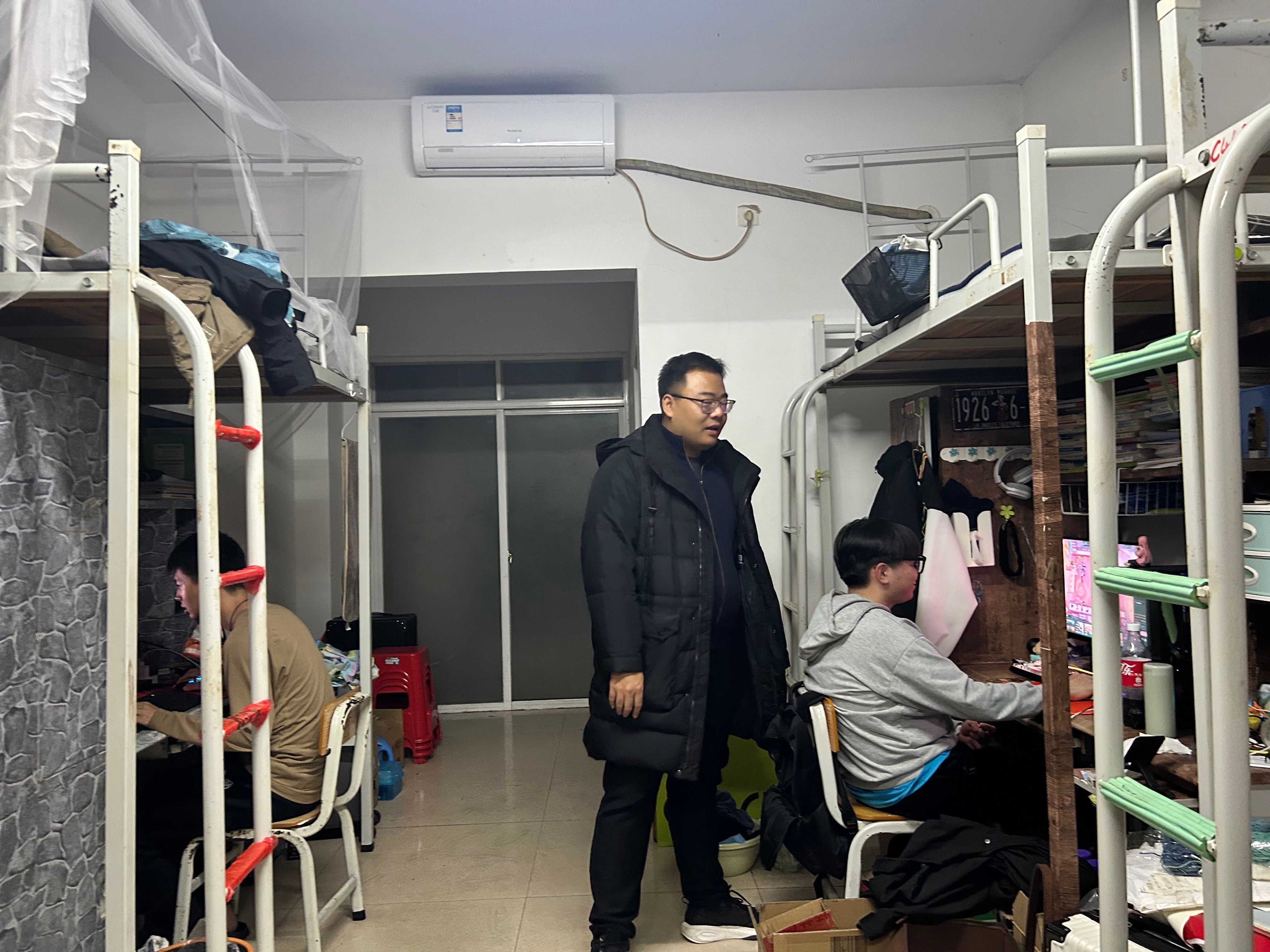走访过程中,老师们首先仔细检查了各个宿舍的卫生状况,叮嘱学生做好每日卫生清洁工作,保持宿舍干净整洁,鼓励同学们相互包容、相互理解,遇到问题及时沟通解决,共同打造和谐温馨的宿舍家园。此外,还对宿舍进行了全面的消防隐患和安全隐患排查,对于发现的诸如个别宿舍灯坏了等问题,当场提醒同学们及时报修后勤部门,并要求相关部门尽快处理,确保同学们的生活学习不受影响。