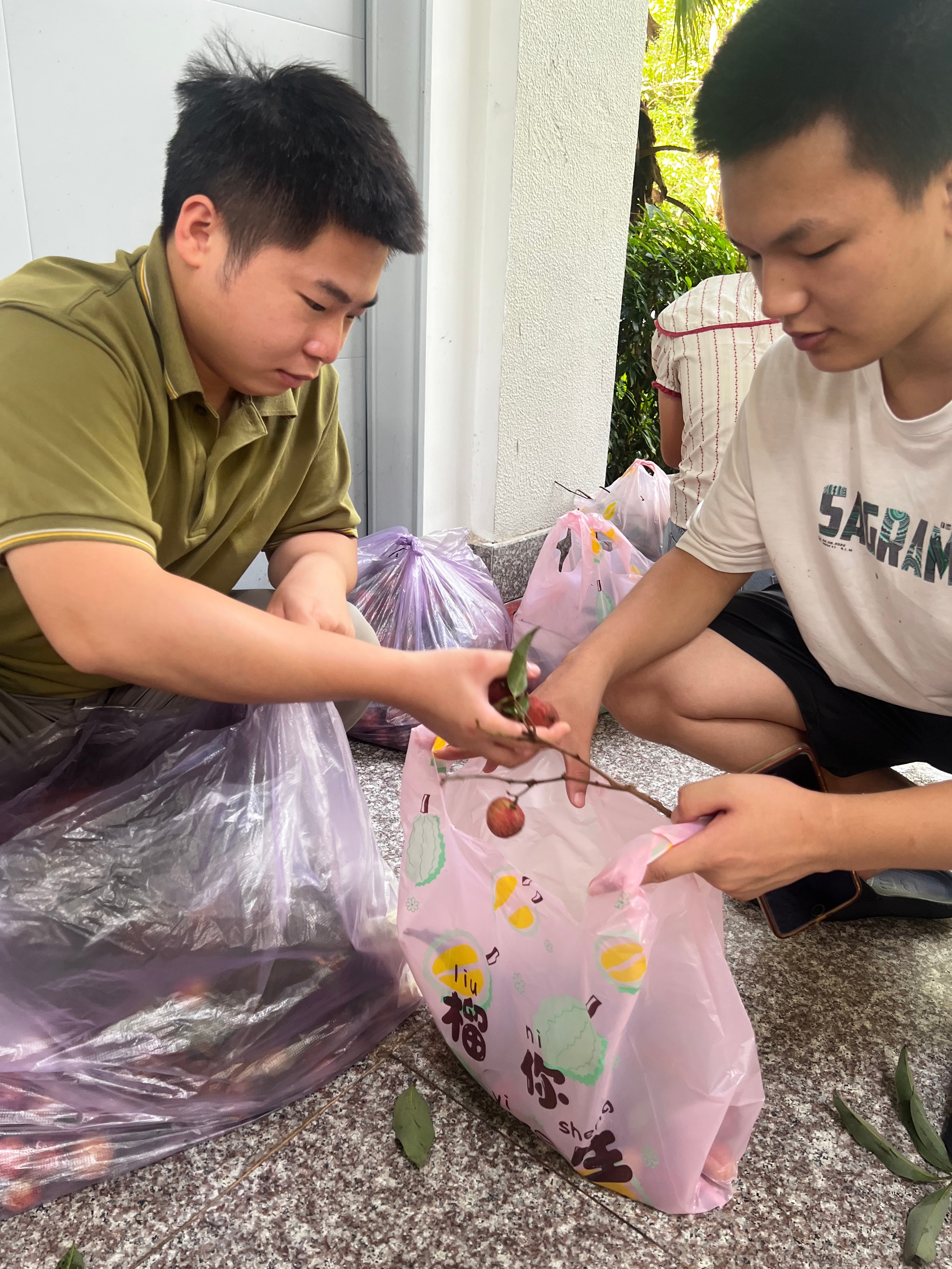 为了确保同学们能品尝到最新鲜的荔枝美味,学校相关部门提前谋划,多方比选,严格把控荔枝品质。从产地的优选、运输的保障,到接收、分装、发放各环节的无缝衔接,无不体现着学校的用心与细致。发放现场,书法学院全体学工教师共同协作,设立高效便捷的领取点方便同学们签领。一袋袋红艳饱满、带着绿叶清香的荔枝被迅速、有序地分发到同学们手中。现场气氛热烈而温馨,同学们脸上洋溢着惊喜的笑容,迫不及待地分享着这份来自学校的“夏日限定”甜蜜。