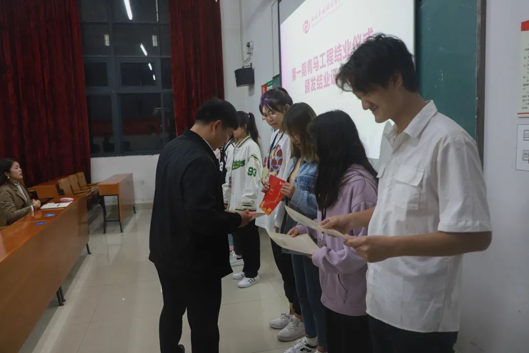会议第二项内容,进行青马工程第一期结业仪式颁发结业证书。