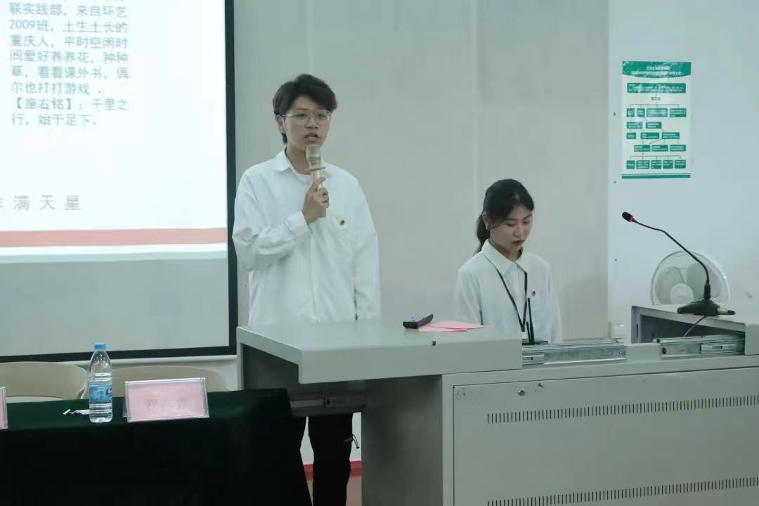 正式会议第九项,候选人竞选。各候选人上台进行自我介绍及竞选,竞选人对于自己的工作经验进行总结,并展望未来工作方向、工作规划,自信的精神面貌以及从容的演讲展现了当代大学生的意气风发;