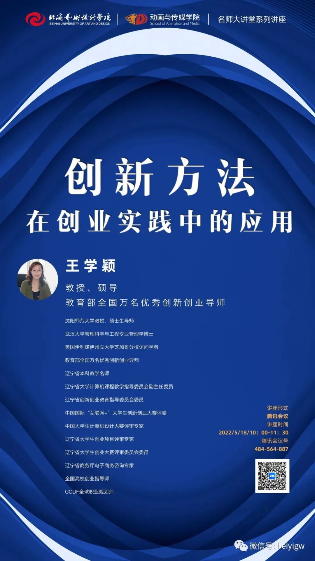 讲座预告 | 王学颖教授《创新方法在创业实践中的应用》